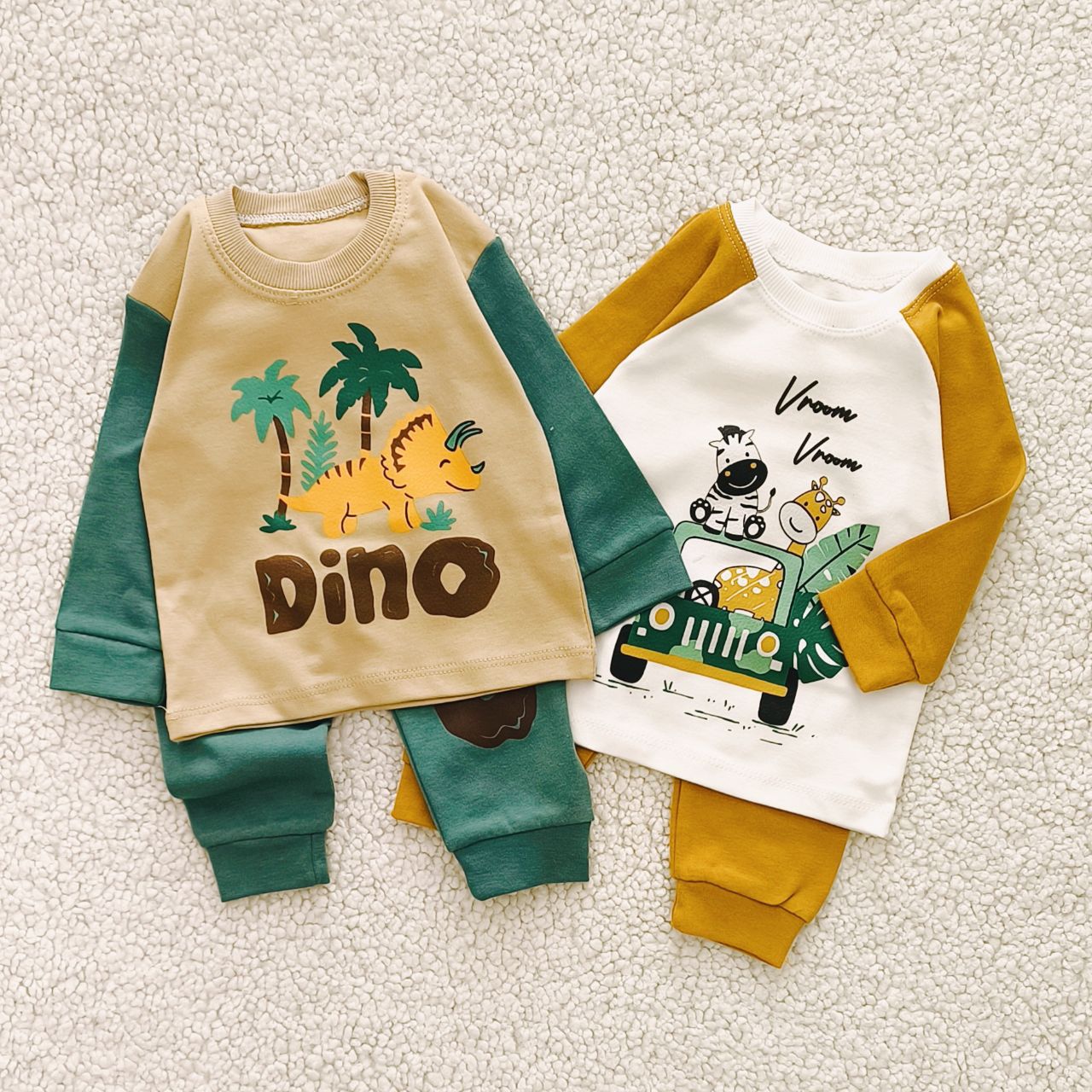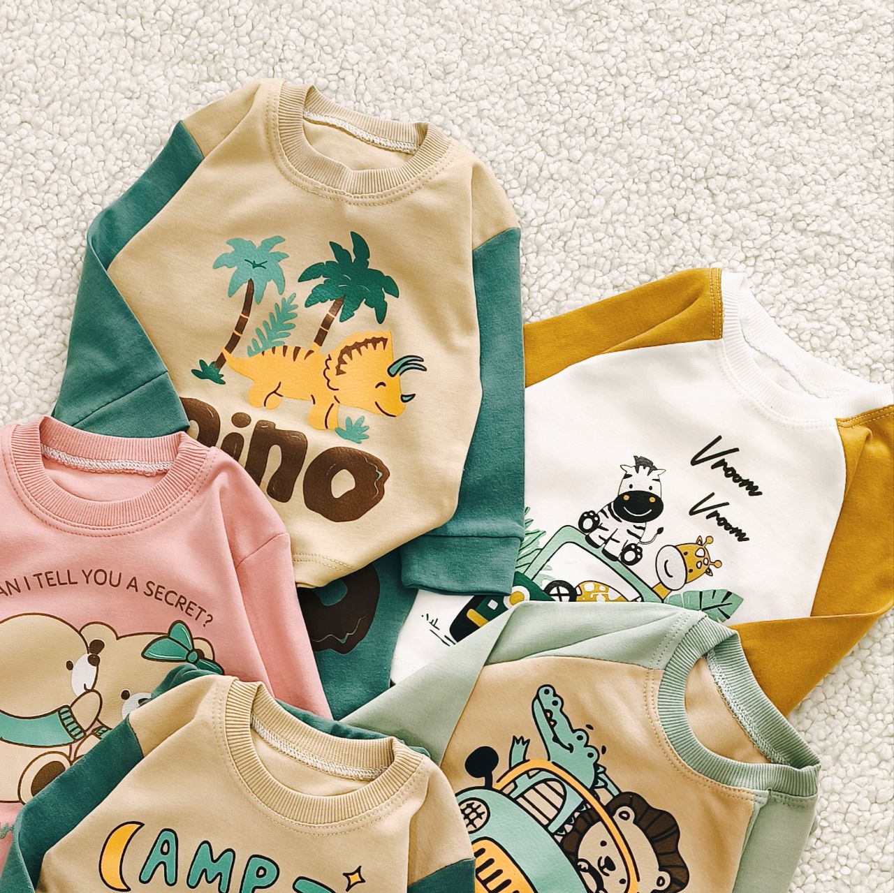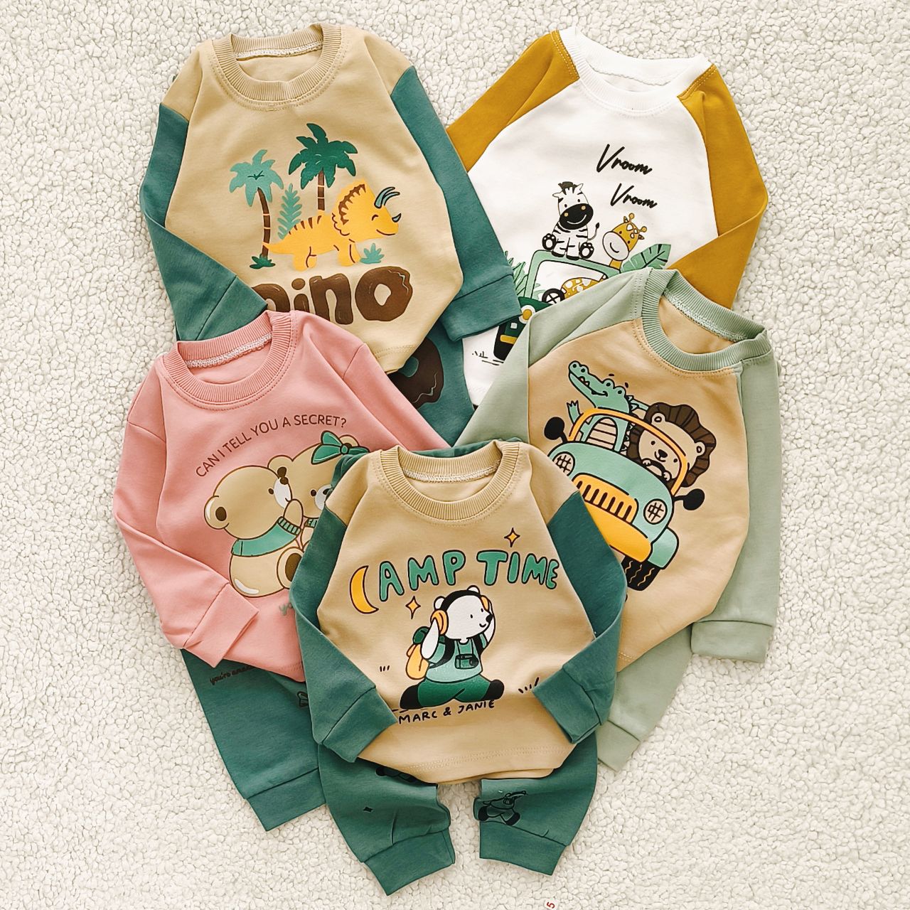 سبز پر رنگ تدی ,سبز پر رنگ دایناسور ,سبز کم رنگ ماشین ,سفید خردلی زرافه ,کالباسی دو خرس |